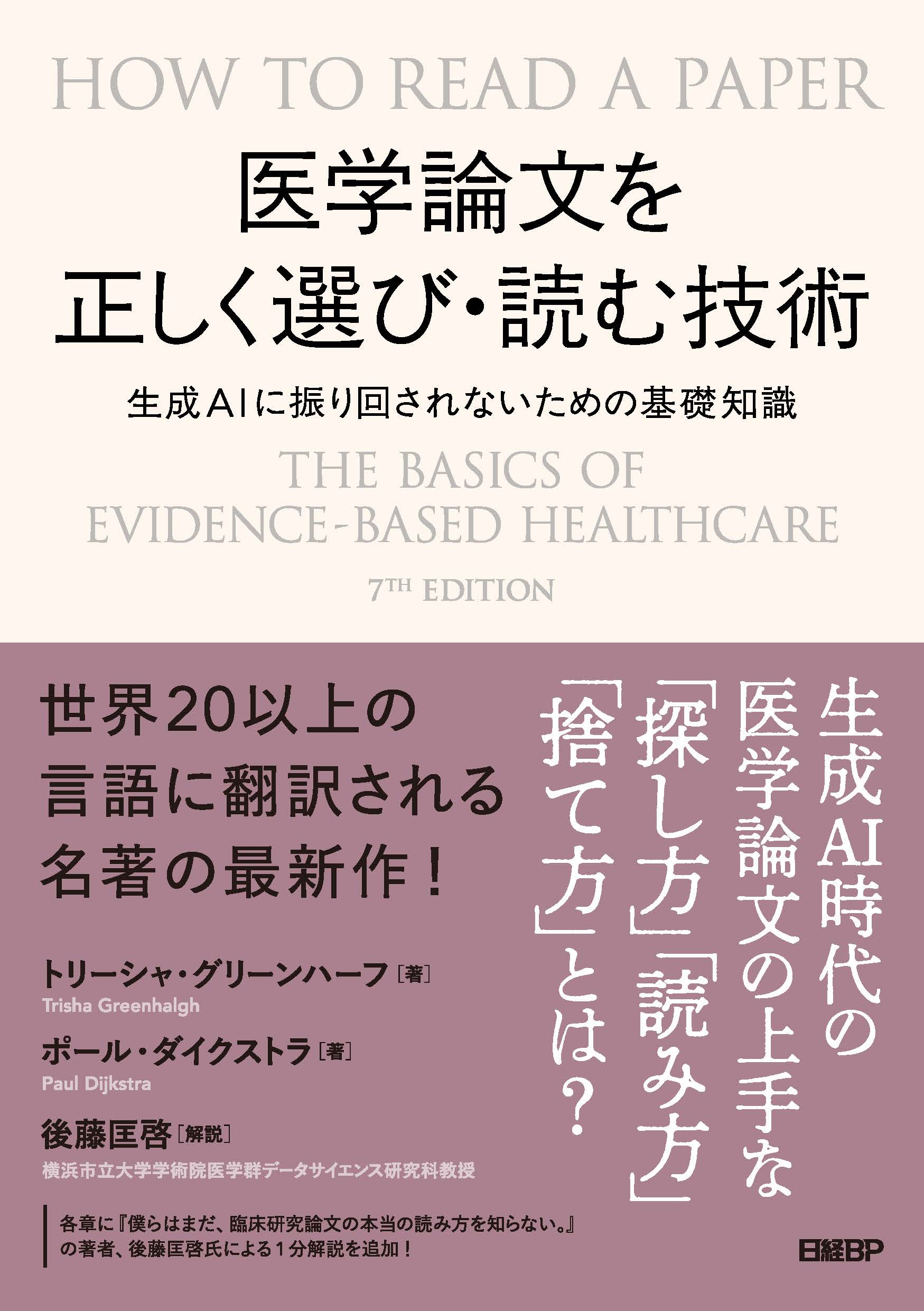 2016年に日経BPから第5版の翻訳書を『読む技術』として出版。今回は第7版の翻訳書となる。日本語版では各章に臨床疫学の専門家である横浜市立大学学術院医学群データサイエンス研究科教授の後藤匡啓氏による「1分解説」を追加。全体像の把握と論点整理が容易になっている。